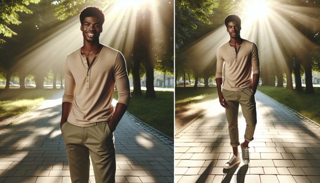 Dressy casual looks elevate khakis for slightly more formal occasions. I opt for brown leather loafers or casual Oxford shoes that pair well with tailored khakis. A fitted shirt or polo in a complementary color works nicely for this style. To maintain a polished appearance, I often choose brown or navy khakis, as these shades blend seamlessly with dressier shoes. Additionally, a lightweight blazer or cardigan can elevate the outfit further, making it suitable for events like dinner dates or corporate gatherings.
